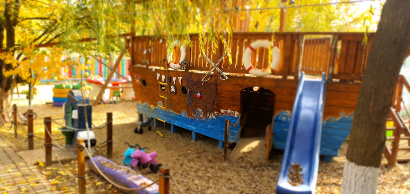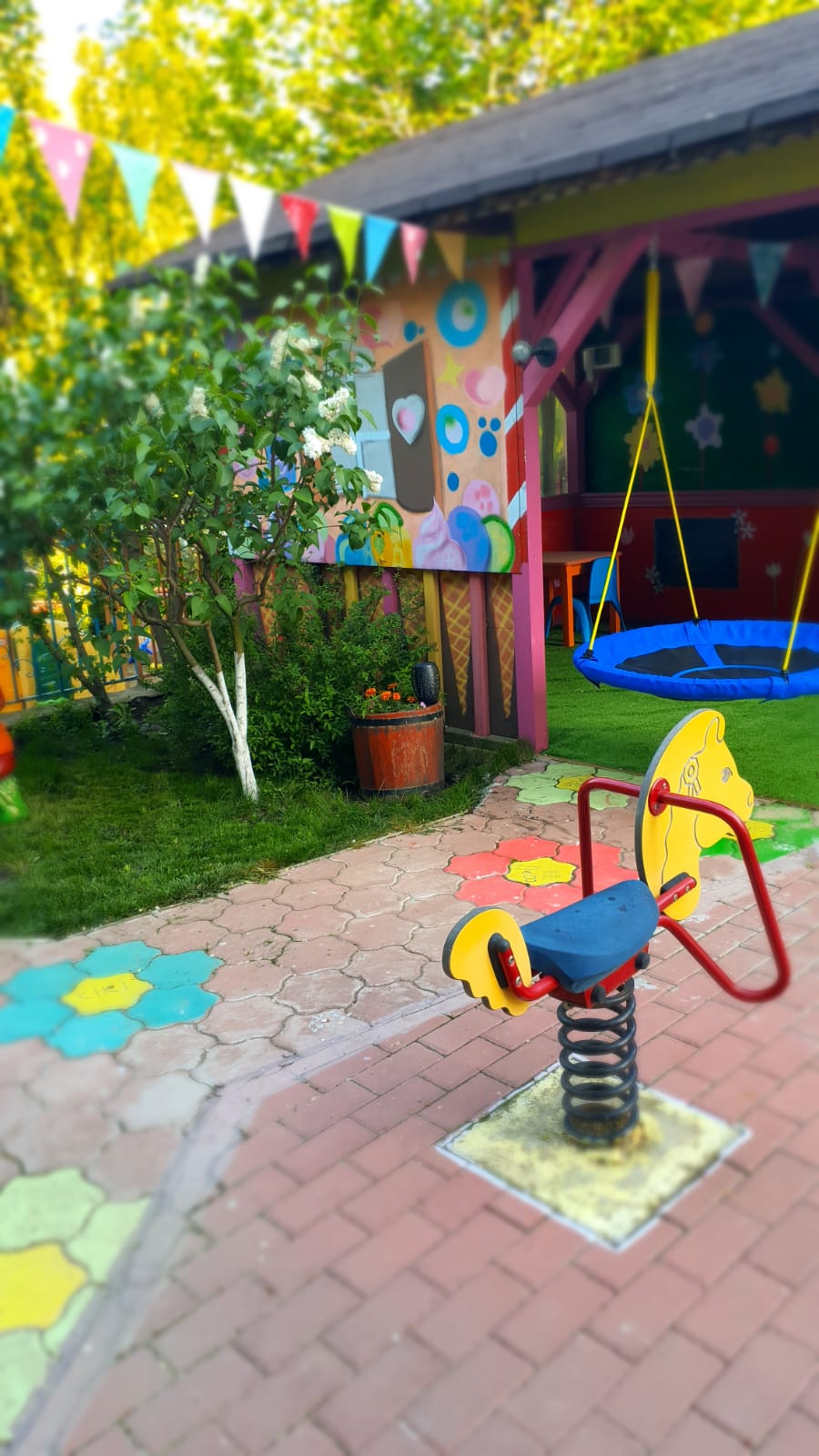 Spaţiile interioare şi exterioare ale clădirii au fost amenajate cu un singur scop: educare prin joc.